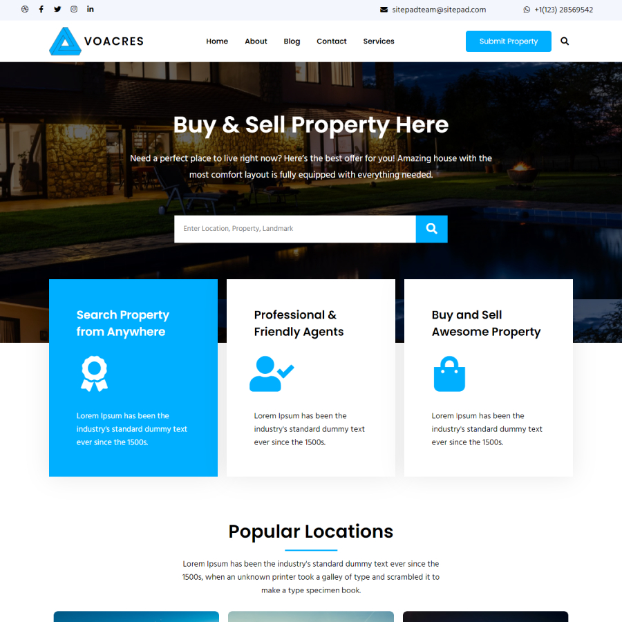 The Voacres WordPress Real Estate Theme offers a powerful platform to amplify your business. Featuring SEO optimization and broad customization, create a sleek, intuitive website without coding. Our package includes one year domain, unlimited hosting and a free SSL certificate.